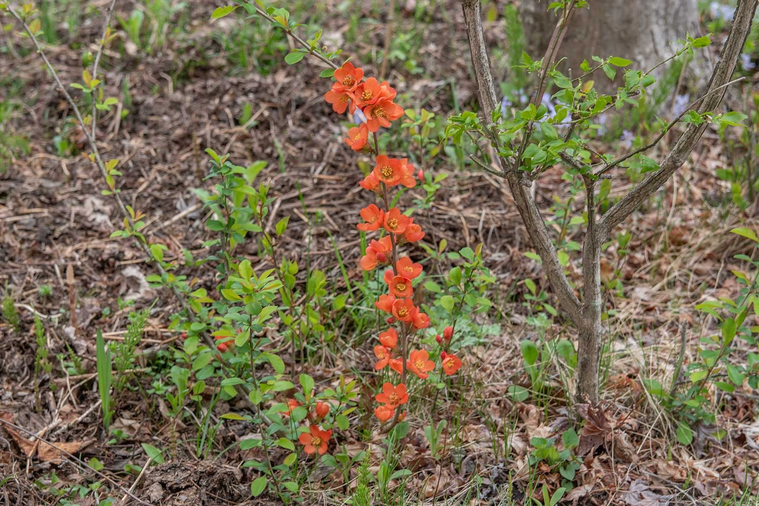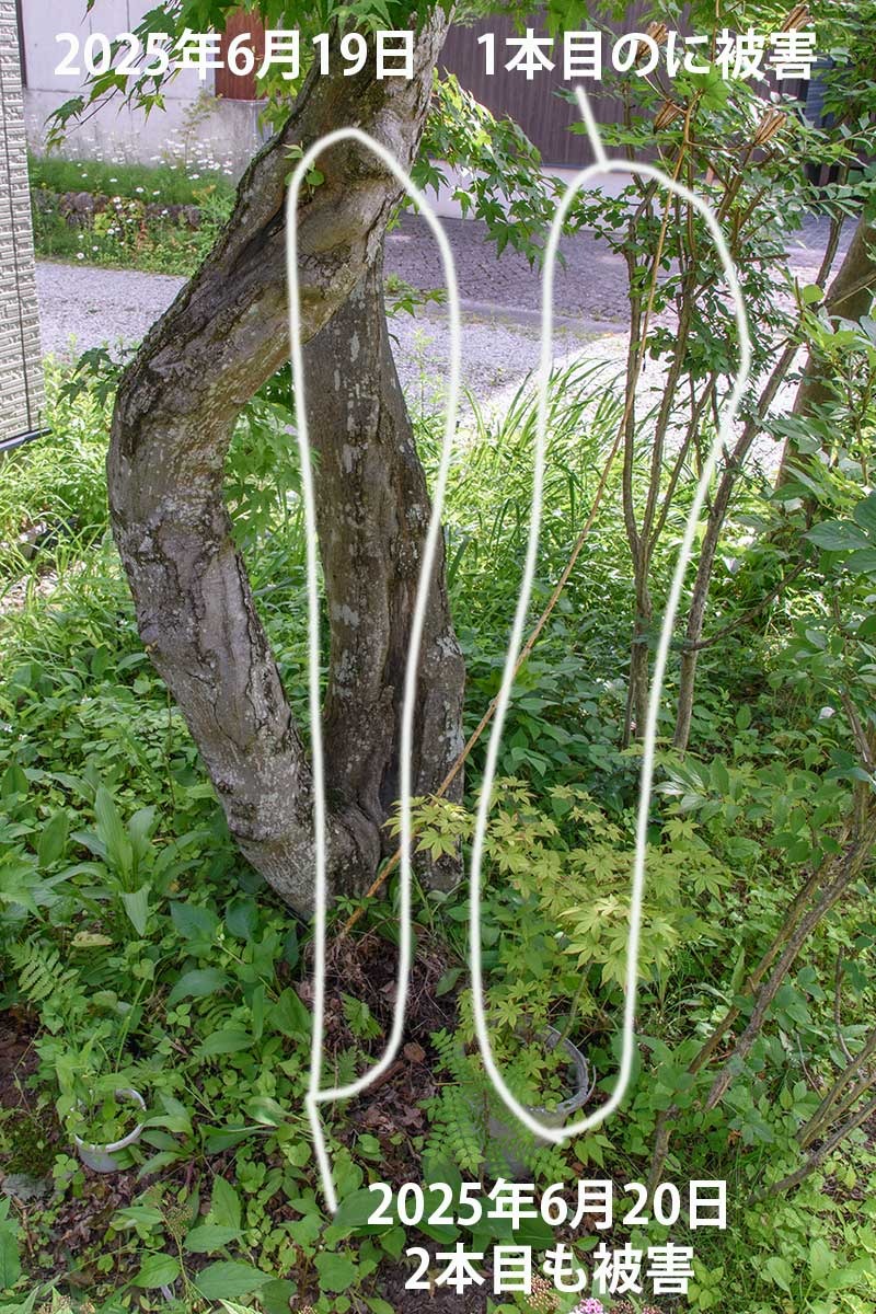 わずかに残っていたイロハモミジの葉も完全に散り、イロハモミジの下に生えていたウリハダカエデの黄葉もほぼ落ち切りました。